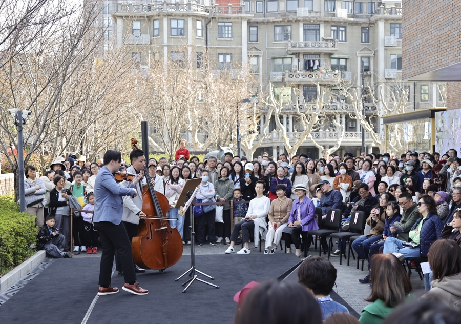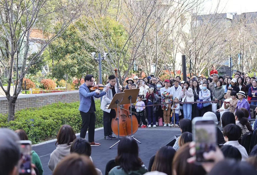 春雨初霁,樱粉满枝。3月28日“城市好意思育日”,徐汇音乐街区花香浮动,市民穿过缀满粉色花苞的樱花树,与一场古典音乐会平和再会。第三季“樱花树下音乐会”如约而至,烂漫春光与漂泊乐声相拥,描画上海春天最放胆的街头风物。