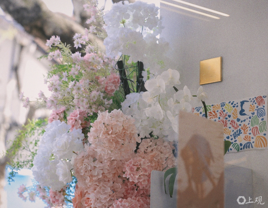 “大施成衣铺”旧址是丁玲旧居,店铺外不雅以白色为主颜色,橱窗花艺配的是淡粉、淡紫与白色花朵,再加翠绿点缀,更显素雅别致,文艺感皆备。不少东谈主在店外拍着拍着,不禁勾起兴味,走进店内。互助海外花草节,“大施成衣铺”自愿在店内经营了一场袖珍展览——旧式插花里的上海。茶几上、桌案边,布设着各色旧式花瓶与插花,收复了上世纪80年代上海东谈主家桌子上的瓶花场景,充满诗意与温馨。施意告诉记者,不少上海东谈主走进来,看到旧式插花咫尺一亮,就自然而然与我方聊了起来。“聊着聊着,生意就冷静来了。”