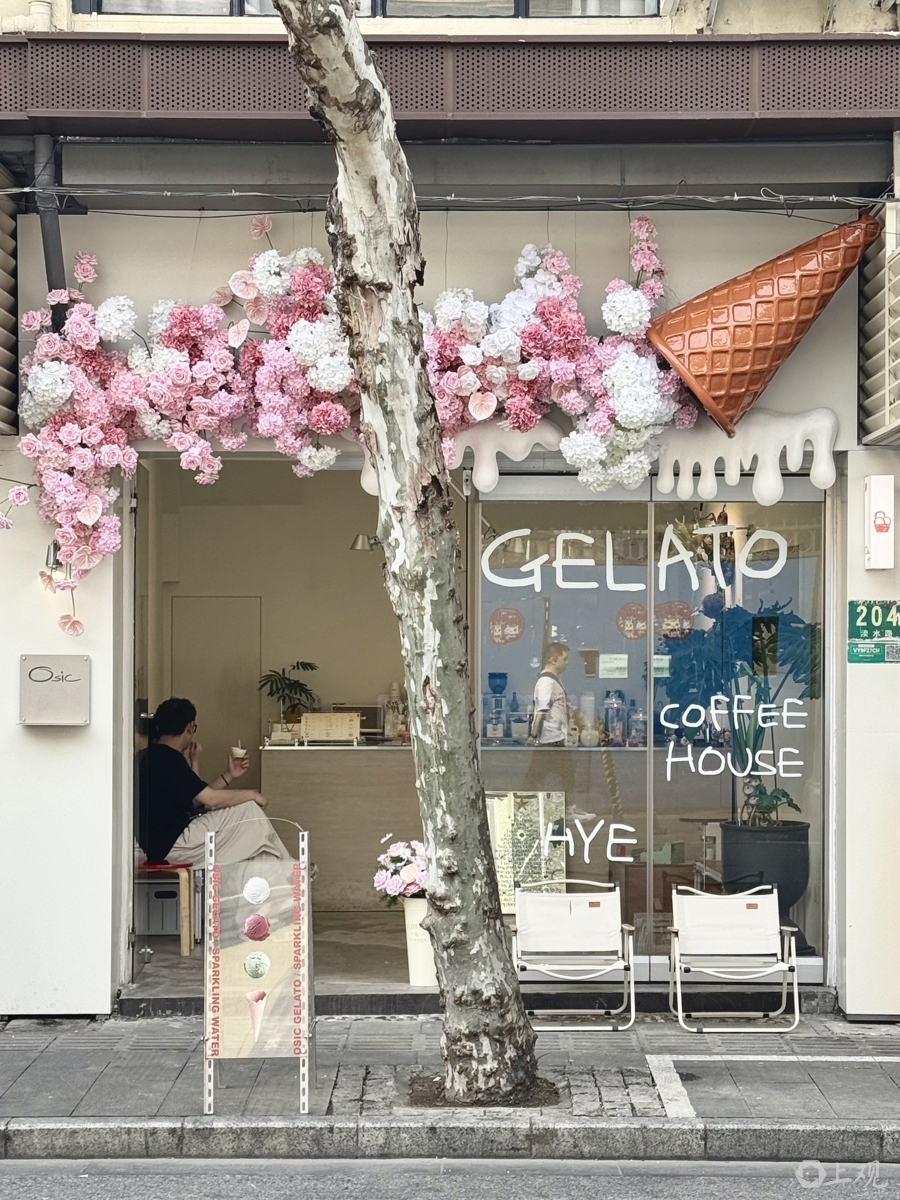 往前走几十米,主打意大利手工冰淇淋的“Osic Gelato”店招处,配资网一个硕大的焦糖色蛋筒“流淌”出一连串粉白相间的花朵“瀑布”,将小店的甜密指数拉满。