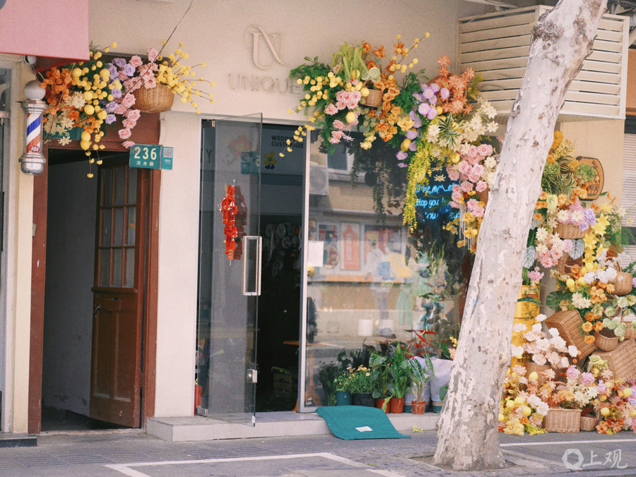 淡水路“花街”的打造,来自淮海中路街谈的主动算作。“咱们聘用计算师,笔据淡水路上10家店铺的作风进行了花艺橱窗计算,并邀请店主们一齐孝顺金点子,于是有了“花街”的呈现。”街谈持重东谈主说,咱们但愿借着上海海外花草节的东风,进一步营造淡水路浓厚的贸易氛围,为小店主们带来客流的流量,更带来耗尽的“留量”。