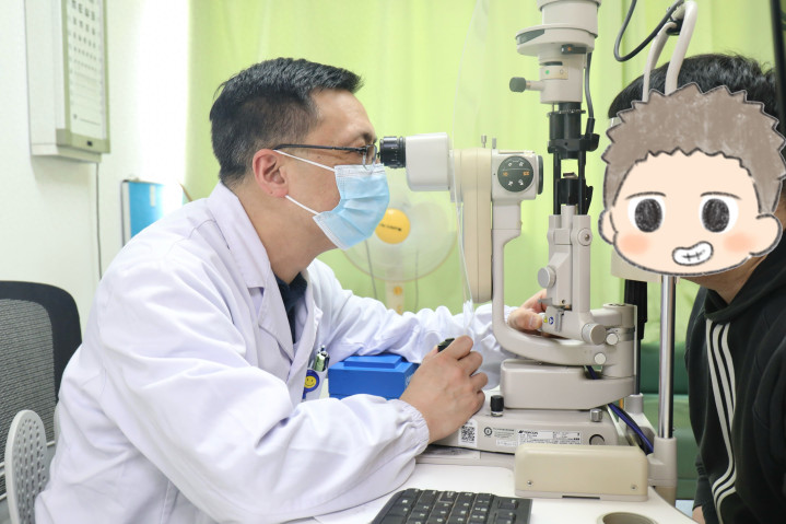 武汉市第一病院(武汉市中西医聚会病院)眼科副主任医师鲁铭为患者作念眼部查验 通信员代雨朦 摄