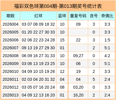 瑞金资本上期福彩双色球第2026013期奖号为:04、09、12、13、16、20 + 01,红球奇偶比为2:4,开出2枚重号16,20,开出连码12,13。