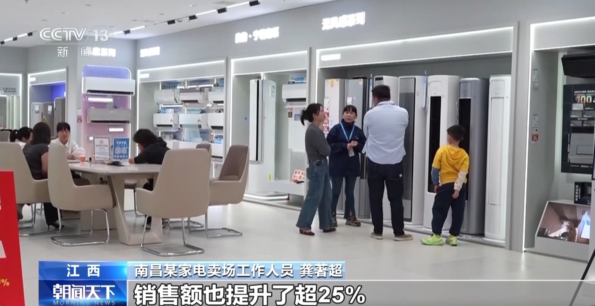 南昌某家电卖场责任主说念主员 龚著超:近期咱们门店的客流量较已往增长了30%,销售额也进步了超25%。其中,智能家电、绿色节能家电尤其受到耗尽者接待,销量占比也接近六成。