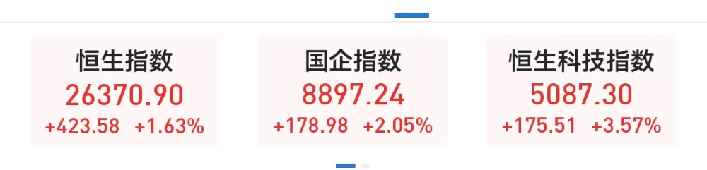 港股方面,百度集团(09888.HK)等科技股络续带引港股大幅反弹。戒指下昼15:35,恒生科技指数上升近3.57%,报5087.30点;恒生指数上升1.63%,报收26370.90点。