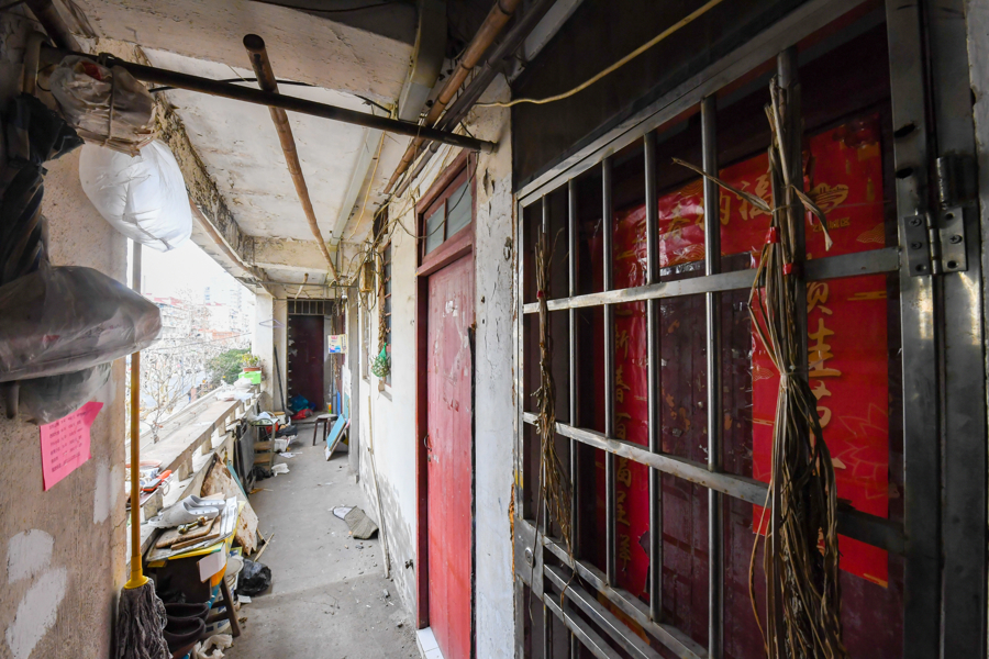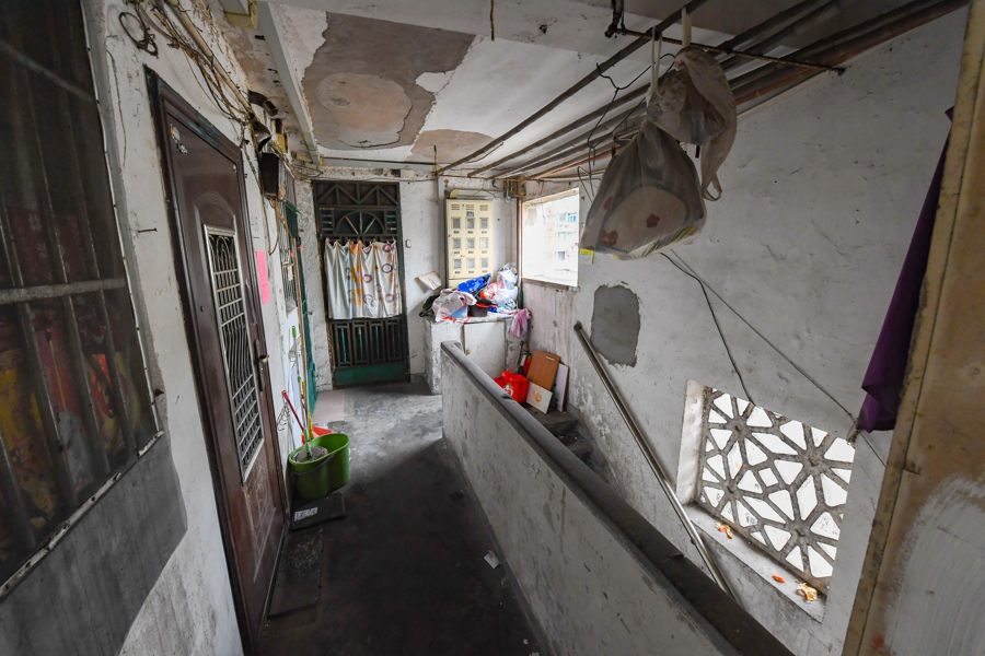 楼谈内墙面斑驳、违建丛生,安全隐患卓绝。