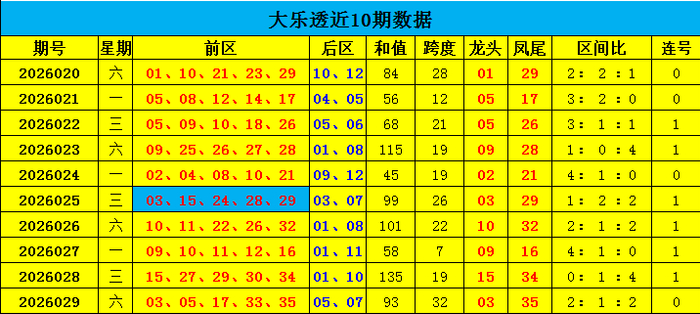 跨度分析:在最近10期奖号中,奖号跨度平均值为20.5,上期奖号跨度为32,本期瞻望跨度为23。