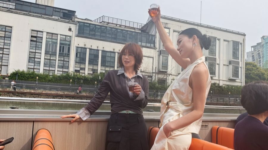 旅客在苏州河游船上享受春日景况。