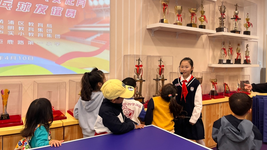 黄浦区巨鹿路第一小学的乒乓球馆里,来参预“校园通达日”的小一又友们眼神都被乒乓球劝诱了