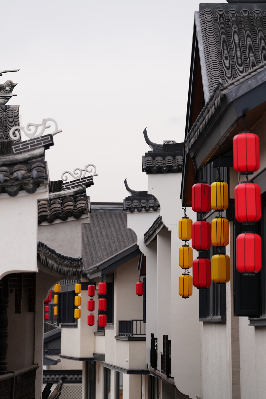 远不雅东街,举座风貌谐和颐养,长短灰的色彩千里稳好意思丽,屋顶的工艺与传统民居保抓一致,尽显江南水乡的温婉韵味;