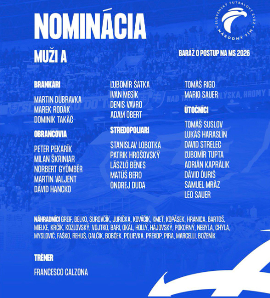 北京时辰3月19日,斯洛伐克发布世初赛大名单,什克里尼亚尔领衔,汉茨科、洛博特卡入选。